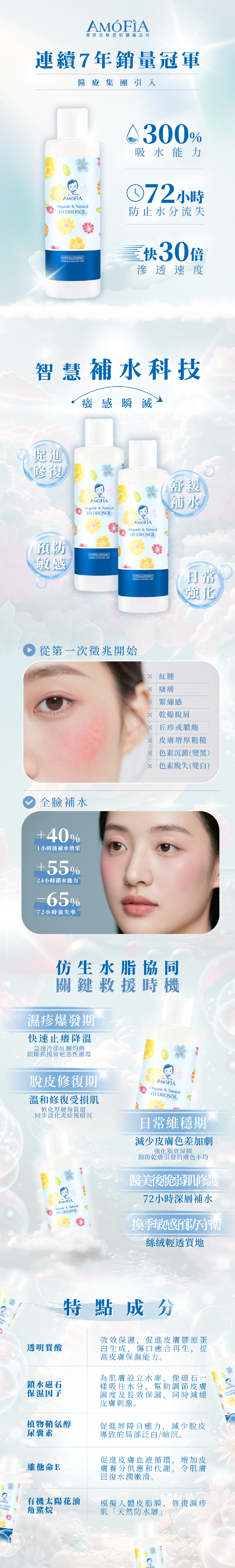 • 每使用前請先搖勻,將適量保濕水輕輕塗抹在清潔皮膚上。