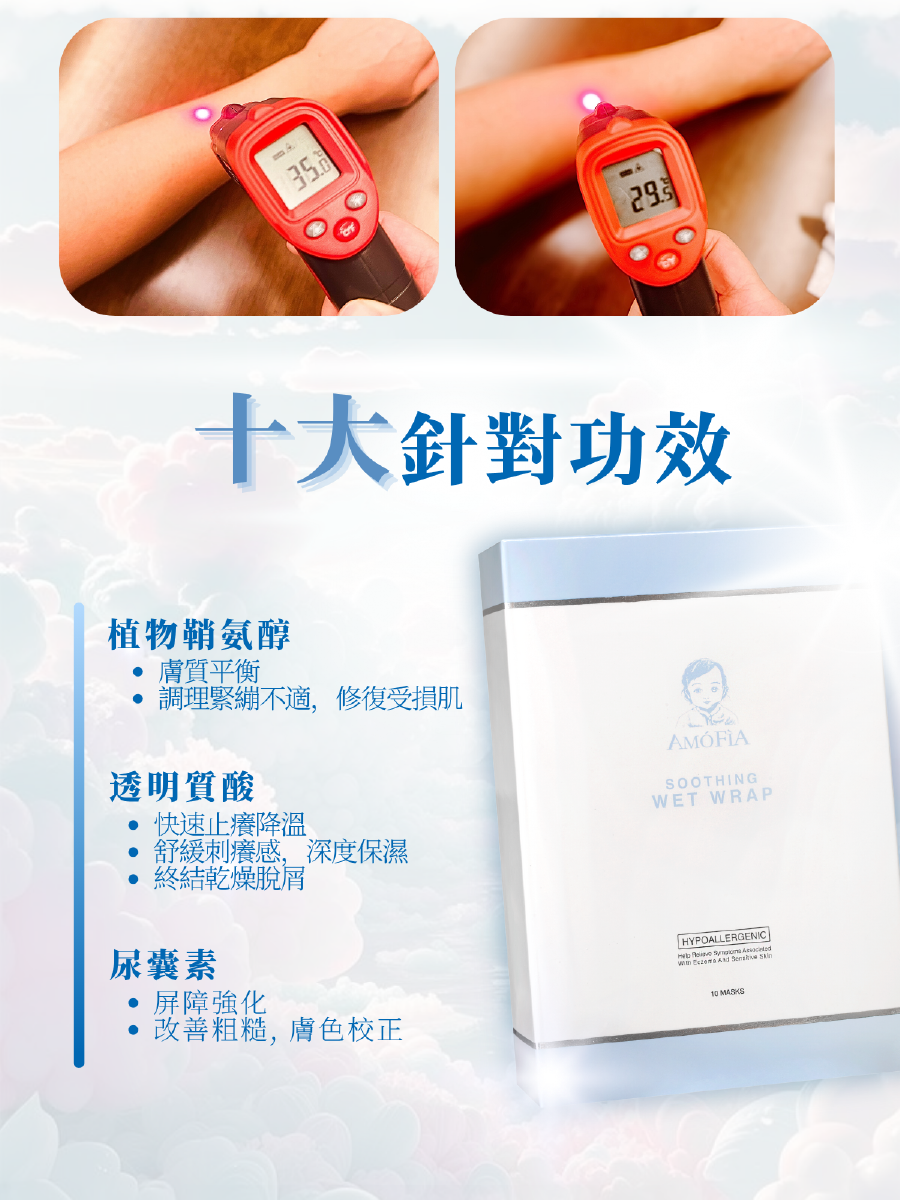 ✅ 快速止癢降溫 ✅ 深層保濕 ✅ 溫和修復受損肌 ✅ 減少皮膚色差加劇 ✅ 親膚貼膜材質